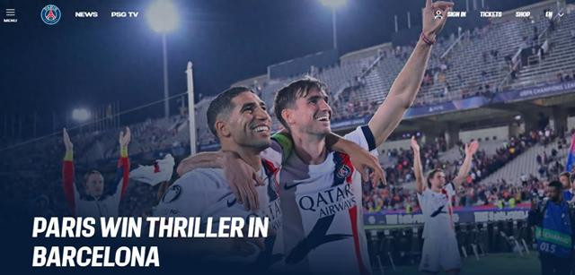 “大巴黎”官网首页对本场比赛的报道。