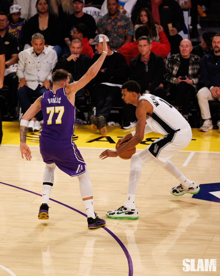 请选择你的战士! Slam官方分享东契奇和文班亚马的赛场照