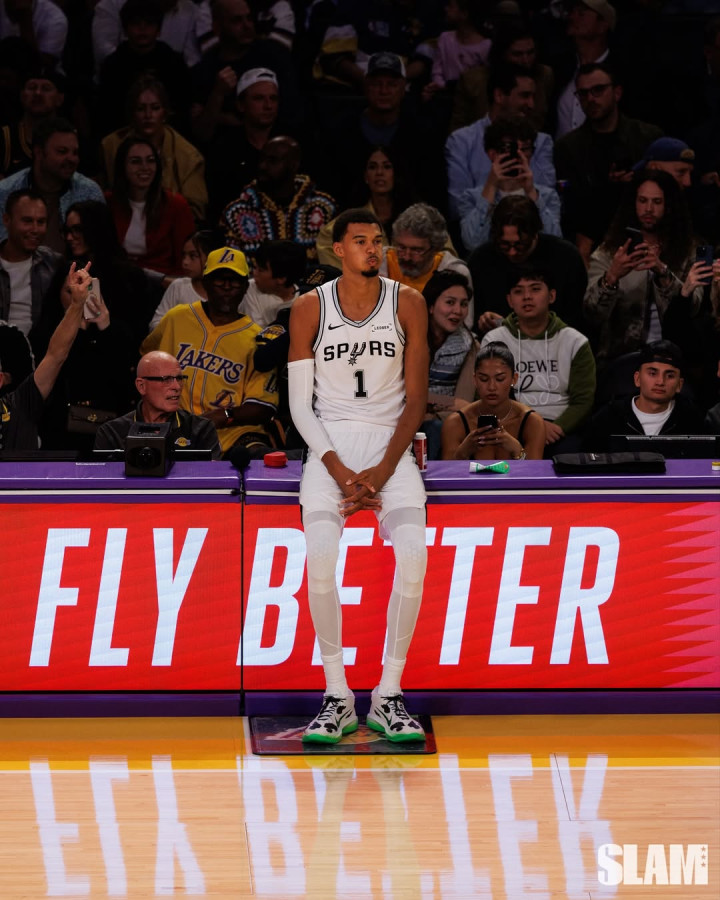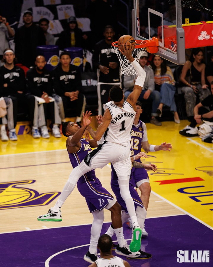 虎扑11月07日讯Slam官方更新Ins,晒出一组湖人球员卢卡-东契奇和马刺球员维克托-文班亚马的赛场照与球迷分享。