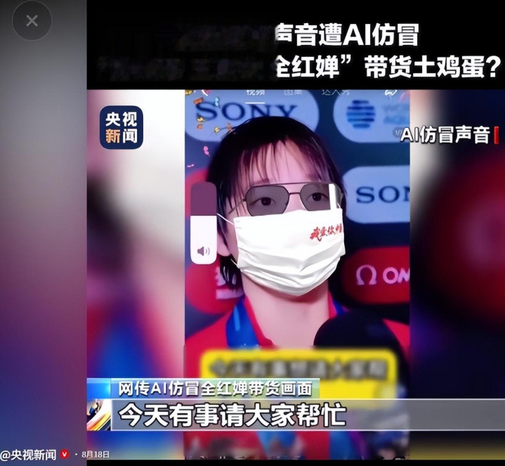 除了王丽云和温峥嵘,“奥运冠军”全红婵、陈芋汐也曾被伪造过直播带货的视频。