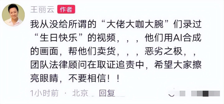 王丽云没忍气吞声,她直接放话,团队律师已经介入取证。