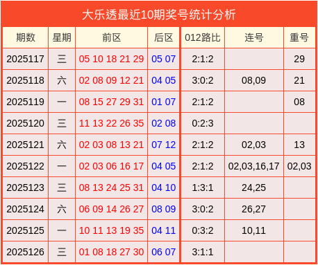 上期回顾:大乐透2025126期开出奖号:前区01、08、18、27、30,后区06、07。